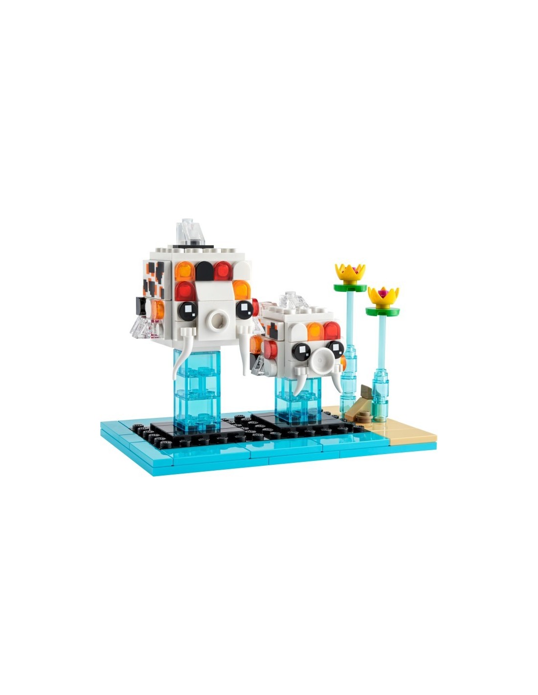 - Baubares Modell für Fischfans – Das LEGO® BrickHeadz™ Karpfen-Koi-Set (40545) enthält 2 Fische, die in einem gemauerten Teich „schwimmen“.