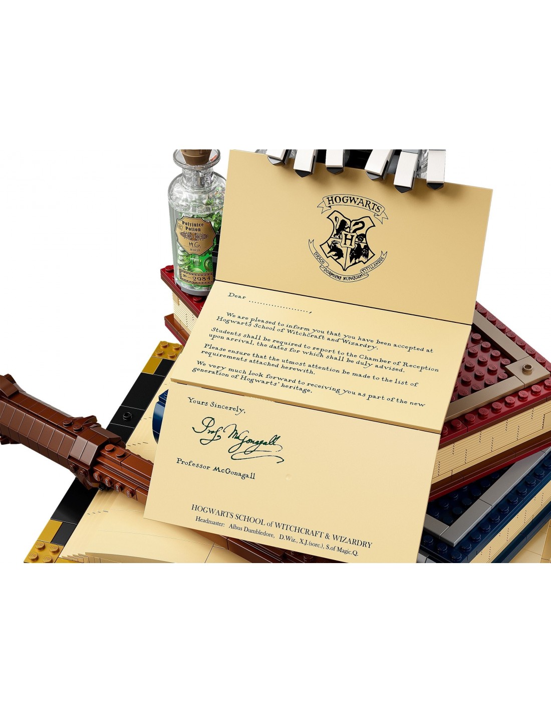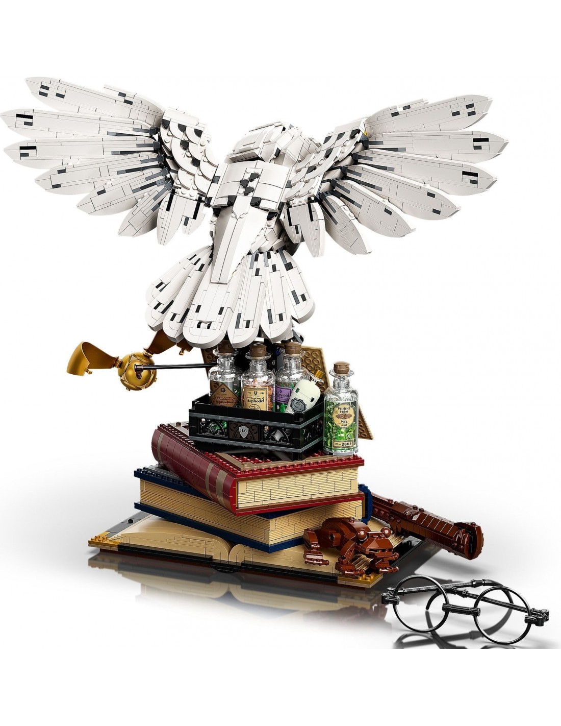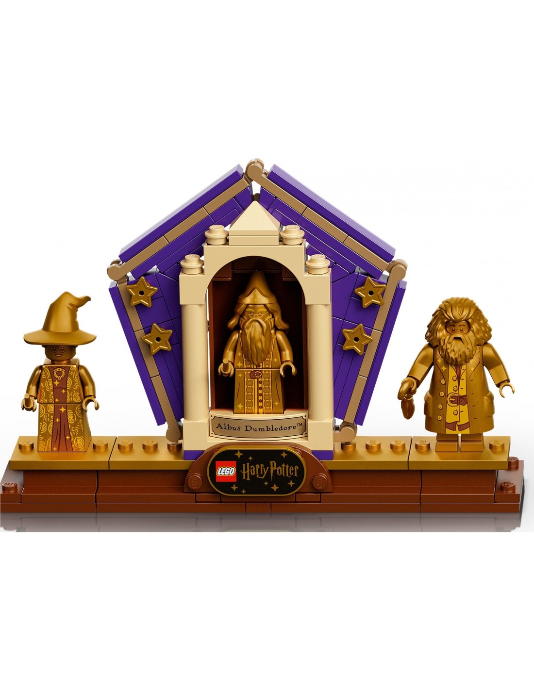 Diese Hommage an die Zaubererwelt von Harry Potter beeindruckt mit einer Reihe ikonischer Artefakte in einem atemberaubenden Modell. Es gibt Harrys Zauberstab und Brille, Rons Schokoladenfrosch, Hermines Tablett mit Zaubertränke, das 5 Zaubertränkeflaschen und magische Zutaten enthält (einschließlich Kiemennetz, Felix-Felicis-Trank, auch bekannt als „flüssiges Glück“ und Trank mit vielen Gesichtern), sowie Tom Riddles Tagebuch. Goldlöckchen und ein Schulschal (kann vom Wohnheim angepasst werden). Das imaginäre i-Tüpfelchen ist Hedwig die Eule mit der begehrten Einladung nach Hogwarts. Das faszinierende Modell wird durch 3 exklusive goldene Minifiguren – Albus Dumbledore, Minerva McGonagall und Rubeus Hagrid™ – und einen Ausstellungsständer mit einem Dekorationsstück zur Feier des 20. Jubiläums der LEGO Harry Potter Reihe vervollständigt.