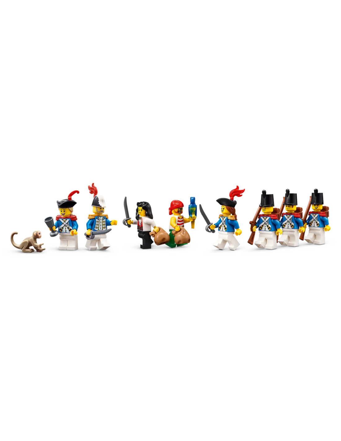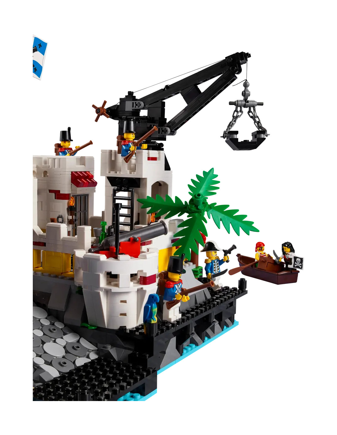 Entdecken Sie verborgene Schätze, während Sie die ikonische Festung Stein für Stein bauen, darunter eine Admiralshütte, ein Piratengefängnis und viele geheime Ecken. Kombinieren Sie die modularen Raumteile zu verschiedenen Konfigurationen und spielen Sie epische Kampfszenen mit funktionierenden Kanonen, 8 Minifiguren und einem coolen Piratenschiff mit bedruckten Stoffsegeln.