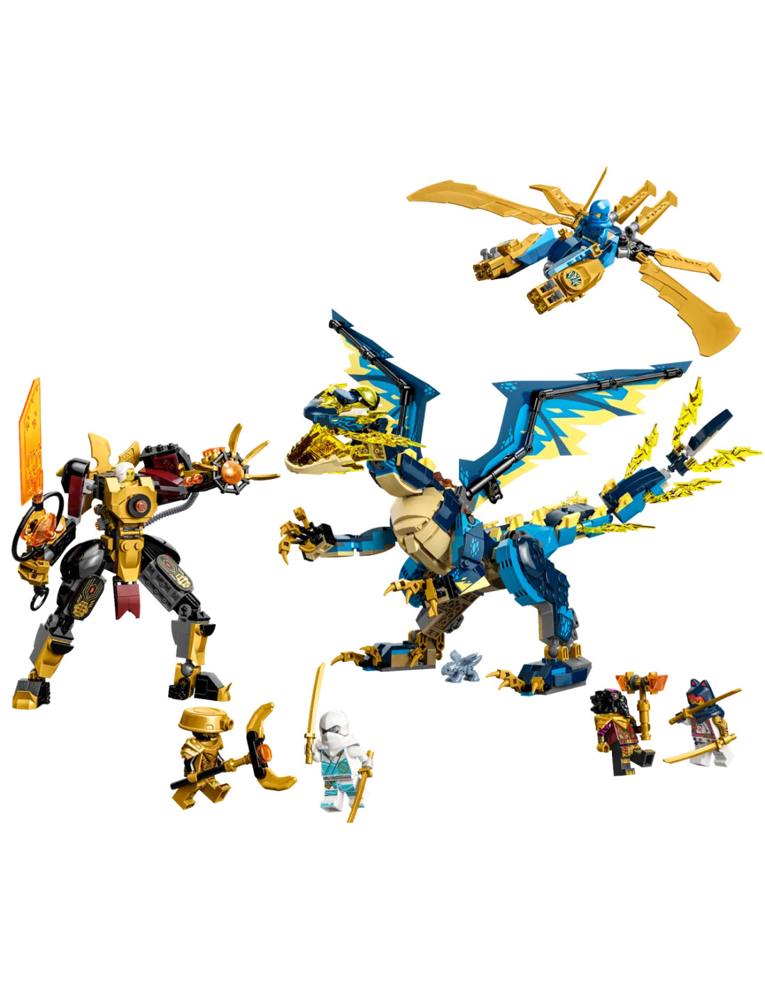 Ninja fans ages 9 and up can relive the epic battle from the NINJAGO® Dragon Rise TV series with the Elemental Dragon vs. Robot Empress (71796) playset. The kit includes the fearsome dragon Jiro, who can be upgraded by adding golden wings and flying machine shooters to take on the empress' posable gold robot and its powerful earthquake weapons.