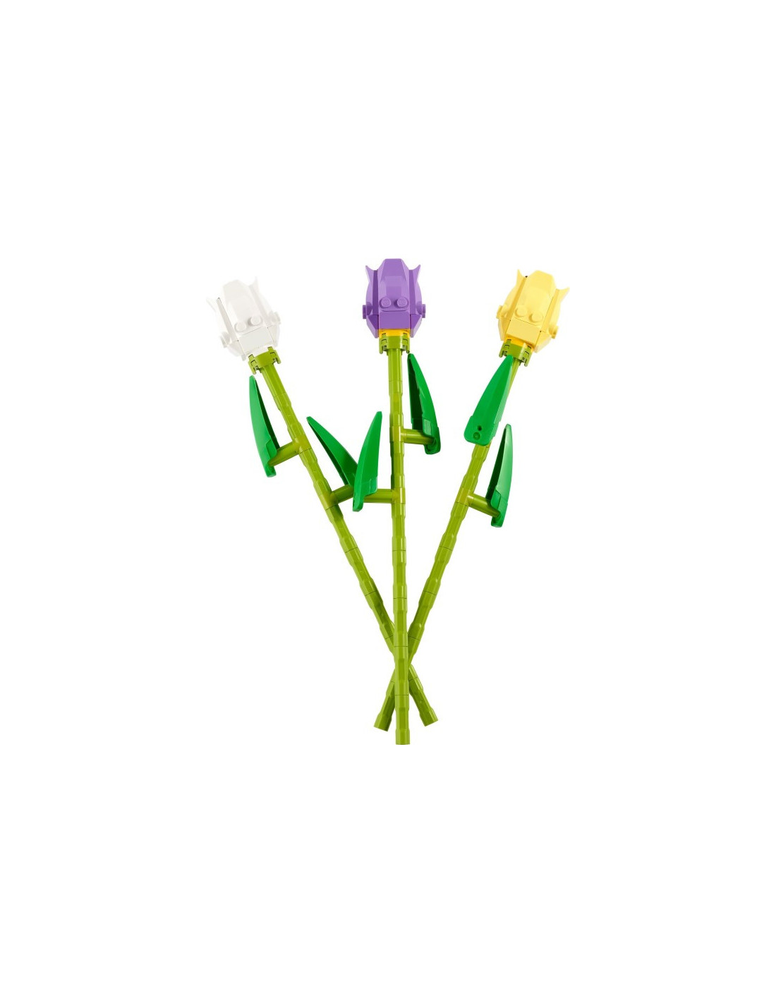- Includes 3 buildable tulips in different colors with adjustable stems.