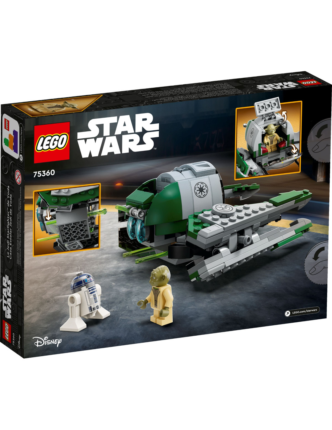Kids will travel to a galaxy far, far away with 2 favorite Star Wars ™ characters and this detailed LEGO ® (75360) Yoda Jedi Fighter brick model. Features a flip-up cockpit for a Master Yoda figure, space for an R2-D2 figure, 2 spring-loaded shooters and adjustable wings for flight and landing.