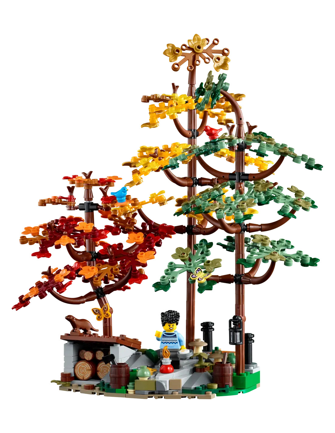 • 3 Buildable Trees and Canoes – Place the trees around the cabin on their own or combine them into a small island that the minifigures can reach in a canoe