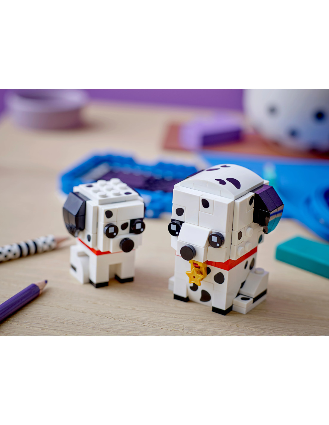 Mali miłośnicy psów pokochają ten zestaw konstrukcyjny BrickHeadz™ Dalmatyńczyk i Szczeniak. Większy z psów ma dzwoneczek na szyi, co dodaje mu uroku. Dalmatyńczyki wylegują się razem w ozdobnym koszyku na solidnej podstawie. Ten zestaw to świetny prezent dla wszystkich dzieci, kolekcjonerów BrickHeadz i miłośników zwierząt. Ten kolekcjonerski zestaw konstrukcyjny zawiera zabawne modele LEGO® BrickHeadz™ Dalmatyńczyka i Szczeniaka siedzące razem w koszyku. Ten 252-elementowy model ma ponad 8 cm wysokości. Większy z psów ma dzwoneczek na szyi i obaj siedzą razem w ozdobnym koszyku. Świetny prezent dla fanów LEGO®, kolekcjonerów BrickHeadz™ i miłośników zwierząt w wieku od 8 lat. BrickHeadz 2016 - 2026 191