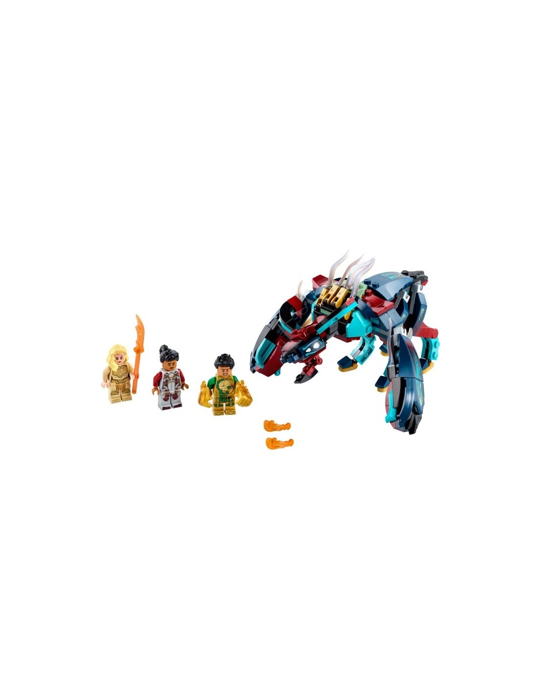 Keď 6nohý Deviant s chňapajúcou čeľusťou zaútočí na 3 Eternaly – Thenu, Gilgameša a Makkari – musia im deti ponáhľať na pomoc so všetkými svojimi schopnosťami superhrdinov. S pomocou 3 minifigúrok superhrdinov sa deti môžu hrať na to, že majú superschopnosti: Thena dokáže vyvolať zbrane na boj zblízka, Gilgameš má supersilu a Makkari vyniká fenomenálnou rýchlosťou. A ak hračku kupujete pre fanúšikov minifigúrok, upozorňujeme, že táto sada LEGO ako jediná obsahuje minifigúrku Gilgameša!