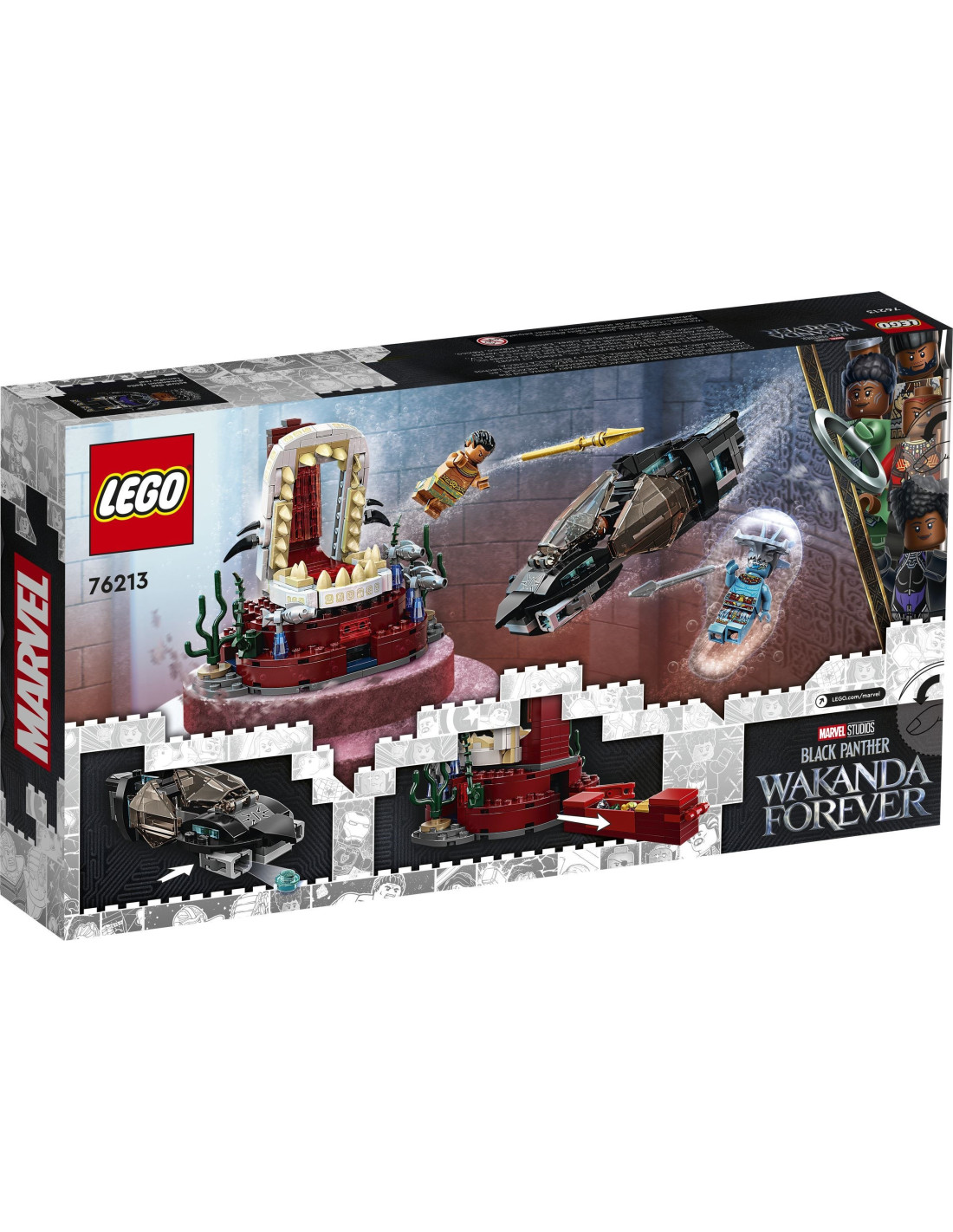 - Zbožňované postavy - obsahuje minifigúrky Shuri, Attumy a kráľa Namora. Zostaviteľný model ponorky a trónnej sály podčiarkujú štýlové doplnky