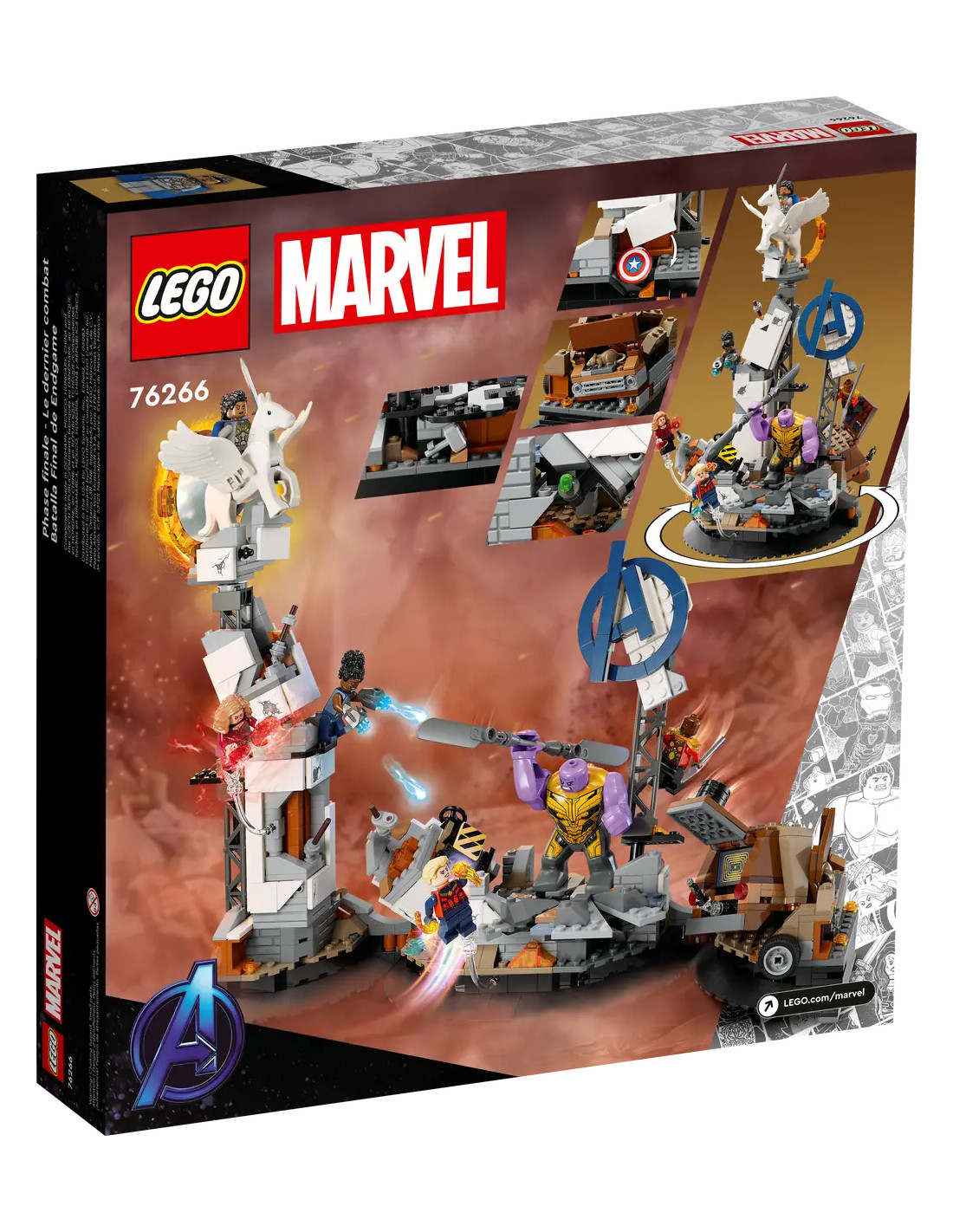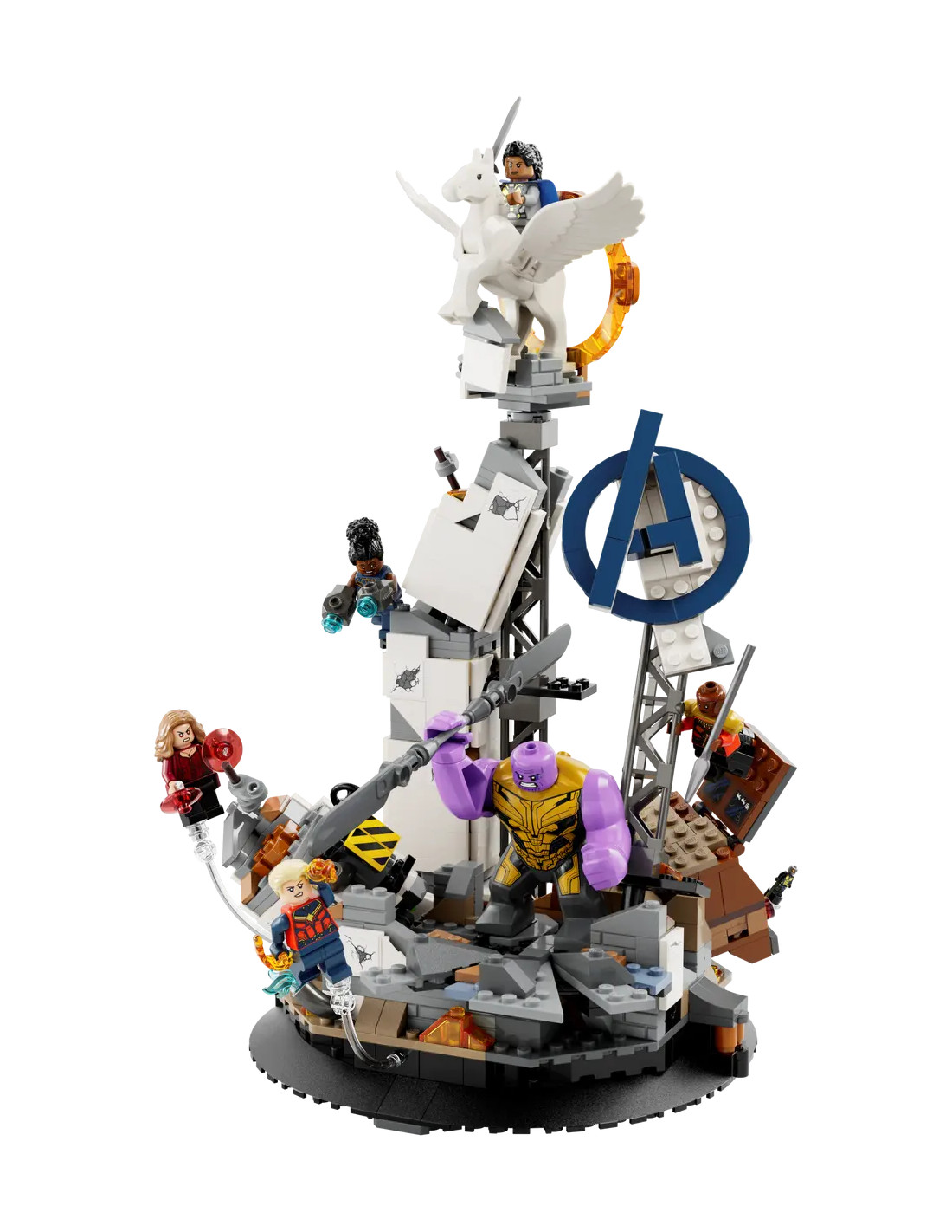 Deti sa v tejto hernej stavebnici plnej inovatívnych funkcií a presných detailov z filmu pridajú ku kultovým postavám. Súčasťou je 7 postáv - Kapitánka Marvel, Okoya, Wanda Maximoff, Shuri, Valkýra, Thanos a Wasp. Akcia sa odohráva v ruinách budovy Avengers. Autenticky prepracované bojové pole obsahuje mnoho miest na pripojenie minifigúrok a navyše skryté prekvapenia, ktoré budú deti objavovať: štít Captaina Ameriky, Thorovo kladivo, kameň času a krysu otvárajúci portál. Zatiahnutím za integrované rukoväte sa bojové pole rozšíri pre ešte viac dobrodružstiev. Stavitelia si tiež môžu užiť porciu digitálnej zábavy navyše pomocou zábavnej a intuitívnej aplikácie Builder – môžu model približovať, otáčať v 3D a sledovať svoj pokrok.