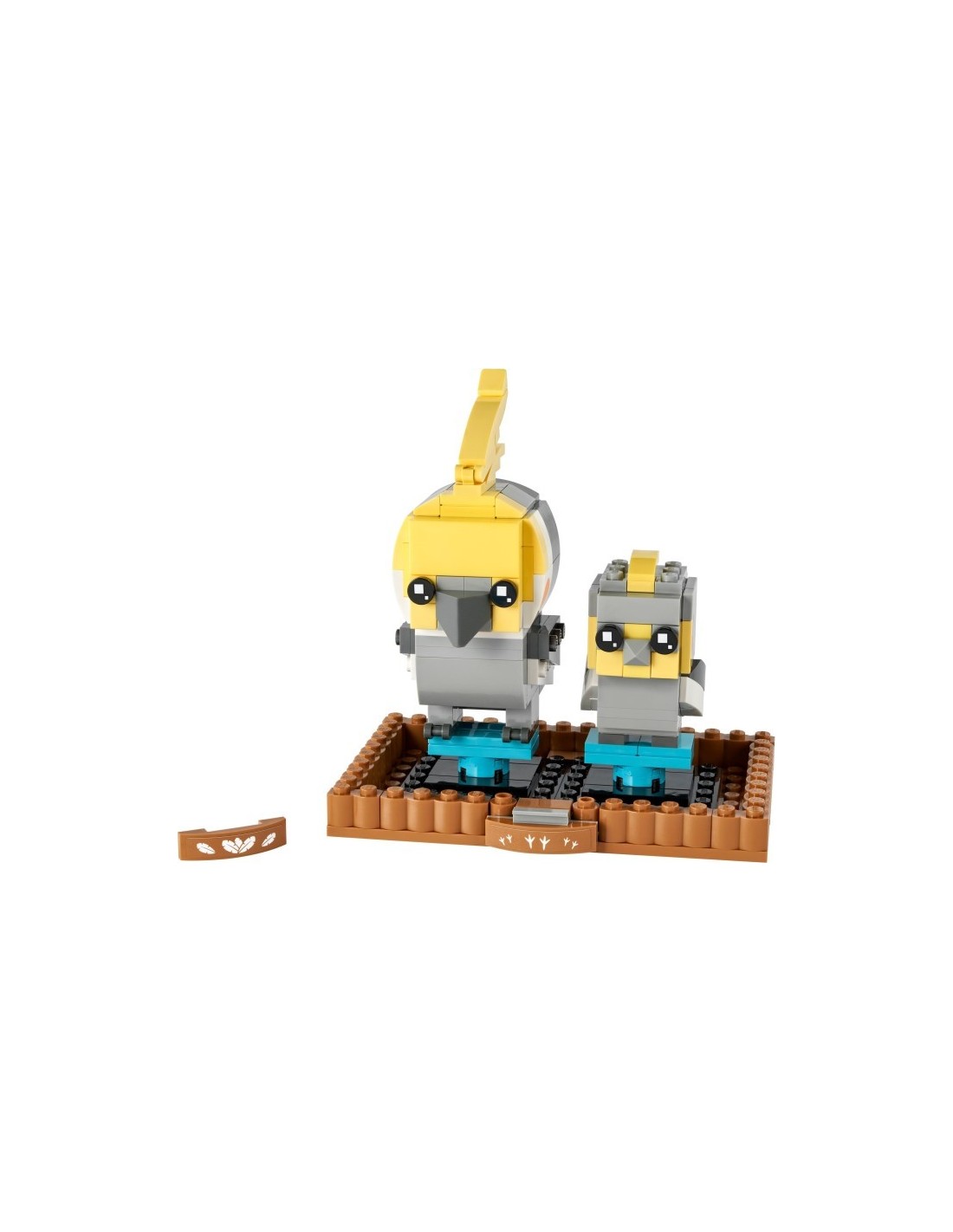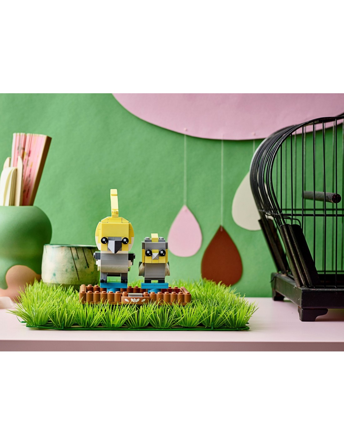 Malí milovníci operených kamarátov si výstavný model korely s mláďaťom z radu BrickHeadz™ doslova zamilujú. Originálne farebné vtáčiky stoja na bidielkach pripevnených k pevnej hnedej podložke. Táto sada predstavuje skvelý darček pre všetky deti, zberateľov modelov BrickHeadz a milovníkov domácich miláčikov.